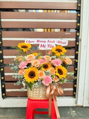 Giỏ Hoa Hướng Dương Dễ Thương Tặng Sinh Nhật Mẹ – B011